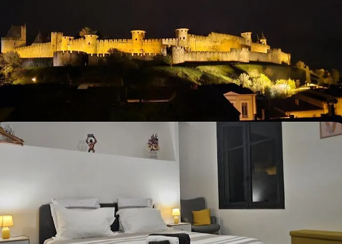 Vue Cite Medievale Castel View カルカソンヌホテルはChapeau Rougeから500メートルの距離で、ラ・バスティッド・サン=ルイから歩いてわずか12分の場所にあります。 このゲストハウスは駐車場もあります。